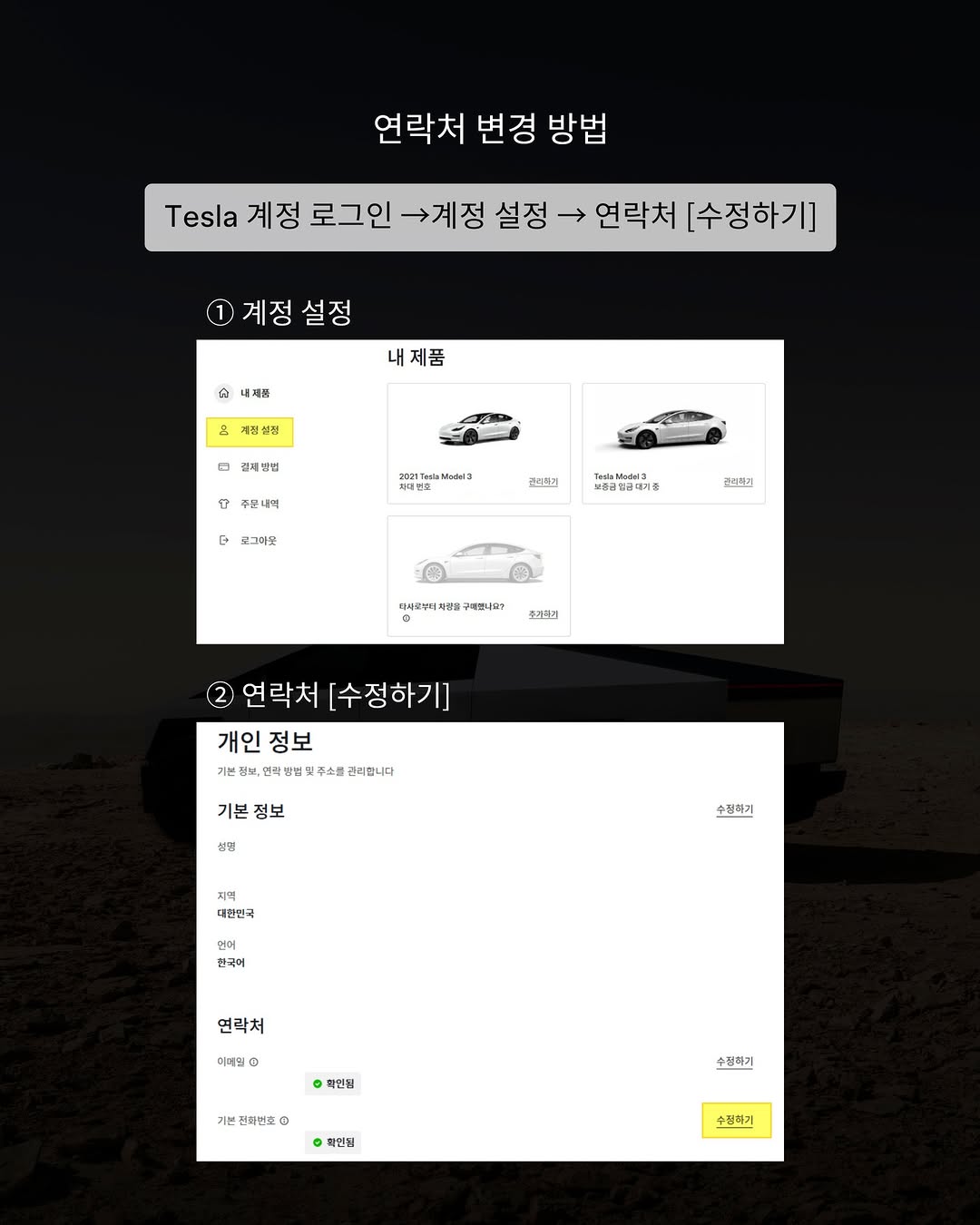 아래 기간 내 Tesla 계정에 로그인하시어 주문을 확정해 주시기 바랍니다.
